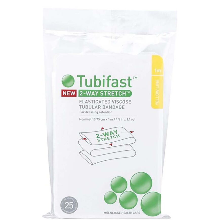 Monipakkaus elastisia putkisidoksia laajojen alueiden suojaamiseen ja sidosten kiinnitykseen. Tubifast 10,75 cm 1m 2-way Stretch putkisidos 12 kpl soveltuu erityisen hyvin osasto-, koti- ja pitkäaikaishoitoon, kun tarvitaan useampia sidoksia vartalolle, päähän tai erittäin suurille raajoille. Kevyt ja kahteen suuntaan joustava materiaali mahdollistaa vapaan liikkumisen, samalla kun sidos pysyy tukevasti paikallaan ilman teippiä tai muuta lisäkiinnitystä. Putkisidokset on helppo leikata tarpeen mukaan ja niitä voidaan käyttää samalla potilaalla useampaan kertaan. Sopii myös kipsinaluskäyttöön. Koko 10,75 cm x 1 m, pakkaus sisältää 12 kpl. CE-merkitty lääkinnällinen laite. Valmistaja Mölnlycke Health Care.