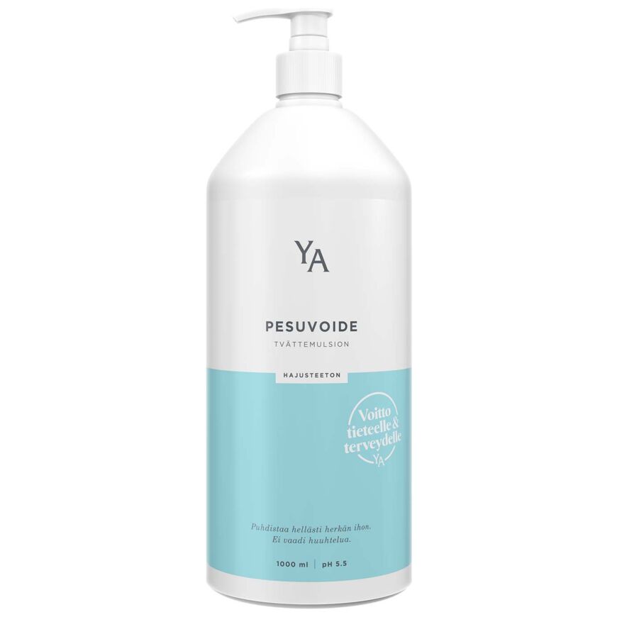 Vårdande och mild rengöringskräm. YA Pesuvoide parfymfri 1000 ml är en mild olje-i-vatten-emulsion som rengör huden skonsamt utan att torka ut eller irritera. Den lämpar sig särskilt väl för rengöring av huden hos inkontinenspatienter samt för alla som behöver ett skonsammare alternativ till tvål. Produkten behöver inte sköljas bort, vilket gör den praktisk även för upprepad användning.
